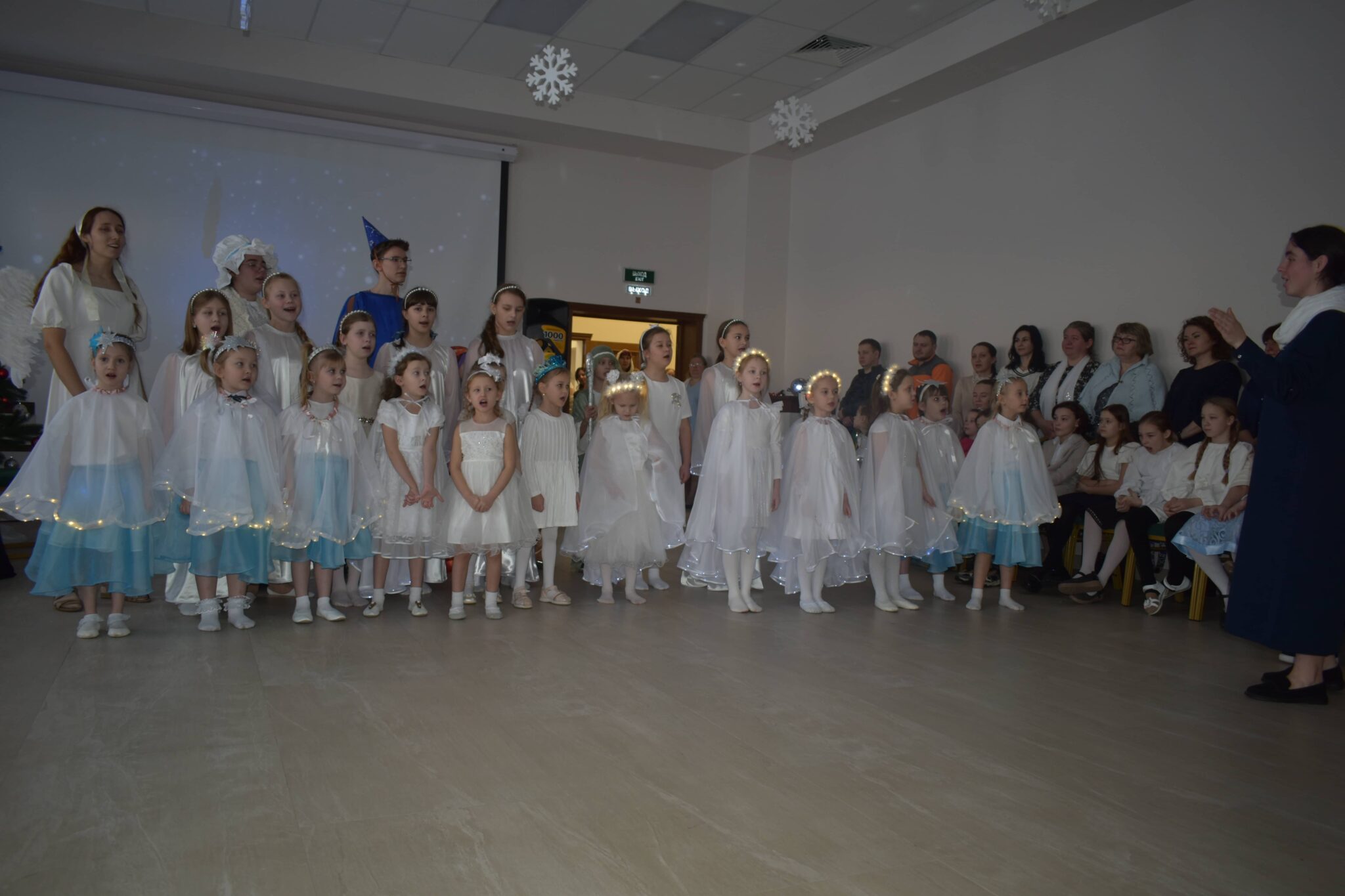 В программе праздника детям был показан мультфильм об истории Рождества Христова, из детских уст звучали стихи и песни, дети танцевали и играли. Всего на празднике присутствовали около 60 человек.