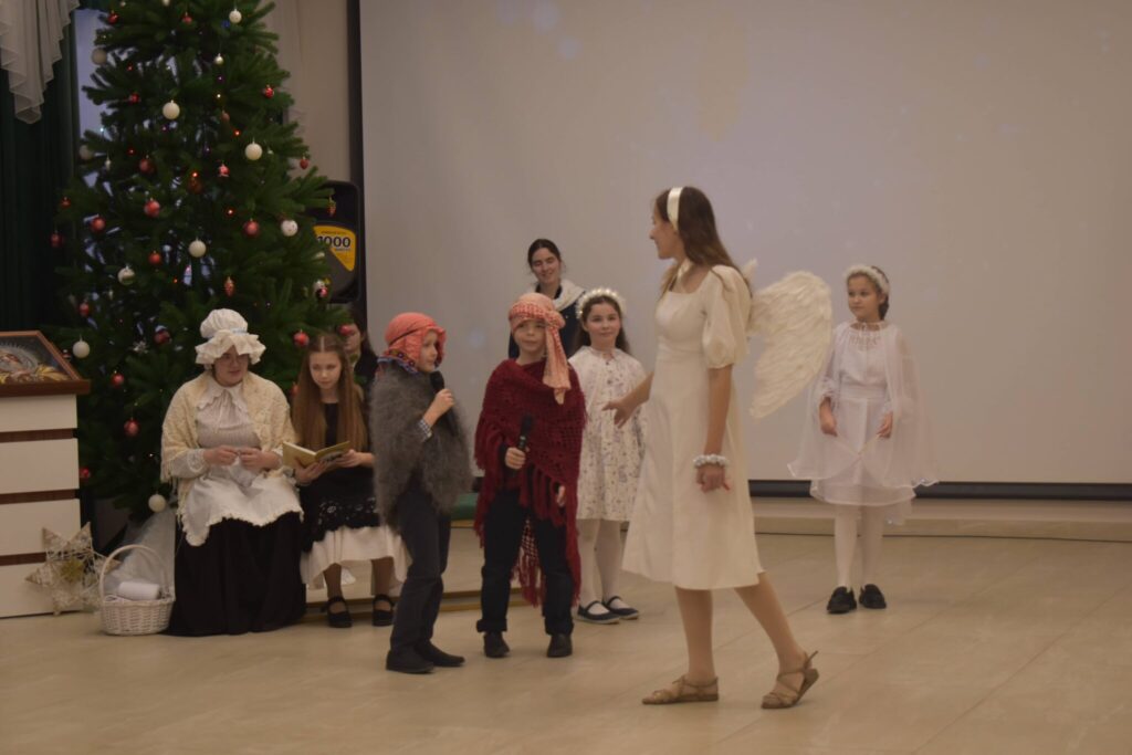 Митрополит Георгий поблагодарил гимназистов, подарил им иконки Рождества Христова и шоколадки, а затем поздравил всех собравшихся с наступившим праздником: «Всегда с большой духовной радостью посещаю эти святые места, где вера Христова возрождается, укрепляется и живет в сердцах человеческих. Мы с вами – наследники святой Руси и великой России. В эти святые рождественские дни Небо и земля вместе с ангелами воспевают: «Слава в вышних Богу, и на земли мир, в человецех благоволение». Поздравляю всех вас с великим светлым праздником Рождества Христова! Пусть рождественская радость будет в наших сердцах, почивает в наших семьях и домах. Важно, чтобы мы хранили традицию жить по воле Божией. Наши предки умели призвать благословение Божие на свои труды, чтобы они приносили добрые плоды, так и мы будем подражать нашим предшественникам. Вспоминаю, как некогда этот храм и это место были в запустении, но благодаря заботам Владимира Александровича Иванова и его помощников открылся православный детский сад, православная гимназия, которые сегодня дают добрые плоды. Благодаря нынешнему главе наше соработничество продолжается: открылся духовно-просветительский центр «Пересвет», который также занимается воспитанием и образованием наших деток в духе святой Руси, Великой России. Храни всех Господь. Благодарю за труды, за молитвы и попечение. С праздником!»