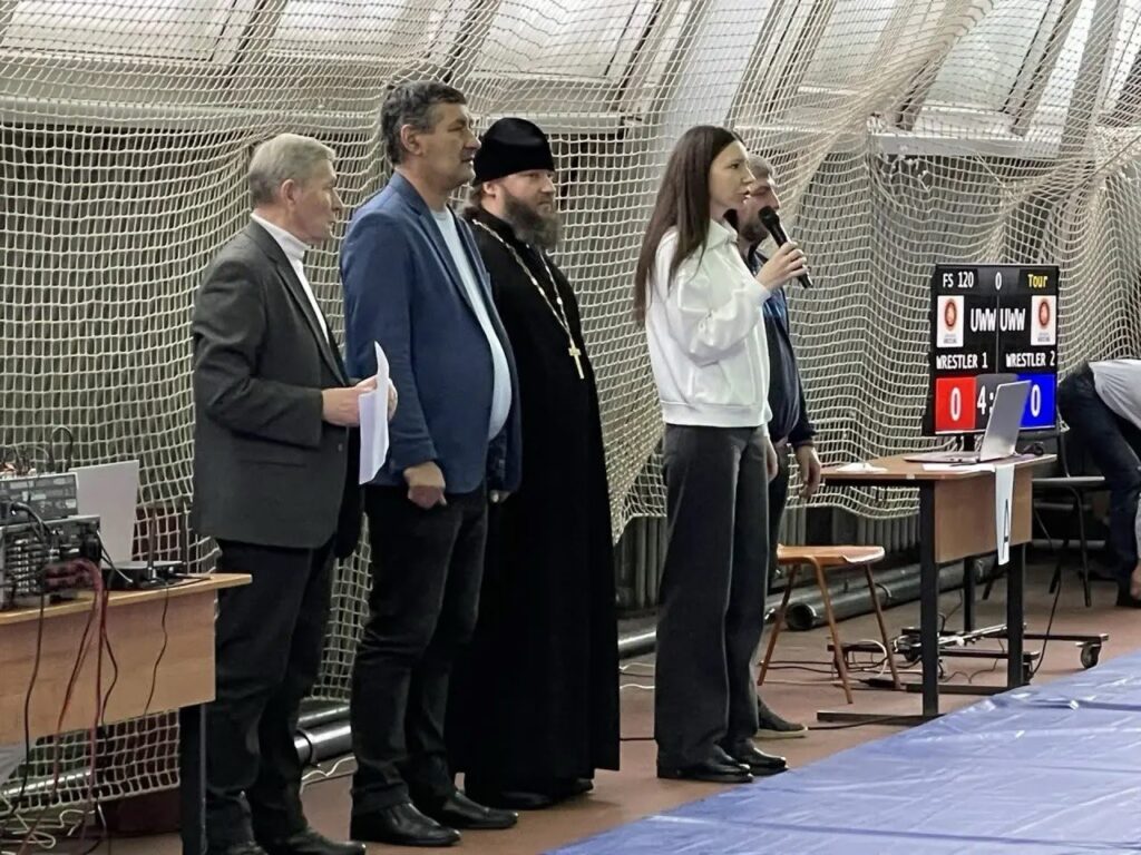 Спортсмены собрались в центре, чтобы получить духовное напутствие и благословение перед важными соревнованиями. Священник обратился к атлетам с тёплыми словами поддержки, пожелал им крепости духа, честной борьбы и достойных результатов.