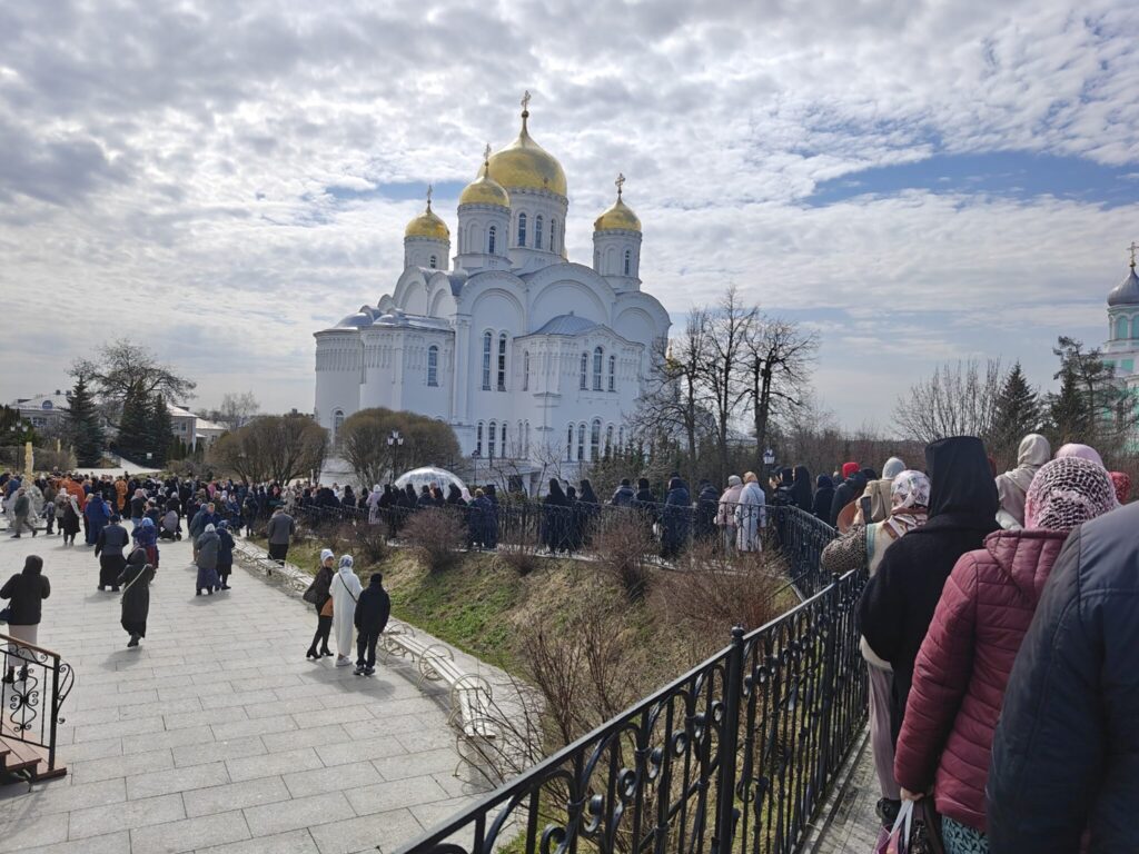 Праздничный день начался с Божественной литургии в Благовещенском соборе Дивеевской обители, которую возглавил митрополит Нижегородский и Арзамасский Георгий. За молитвой собрался сонм архипастырей Русской Православной Церкви, а также соборно служили благочинные Нижегородской епархии, в том числе благочинный Борского округа иерей Иоанн Крючков.