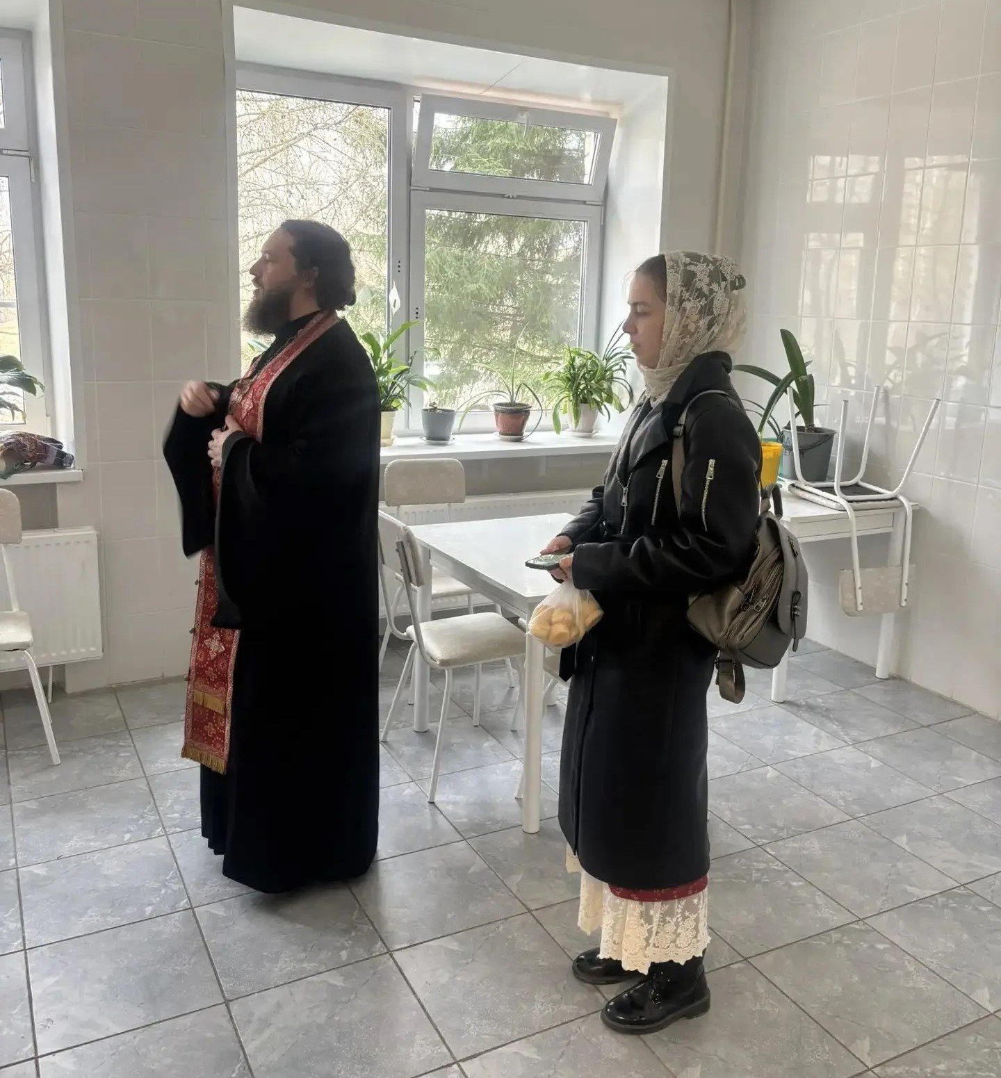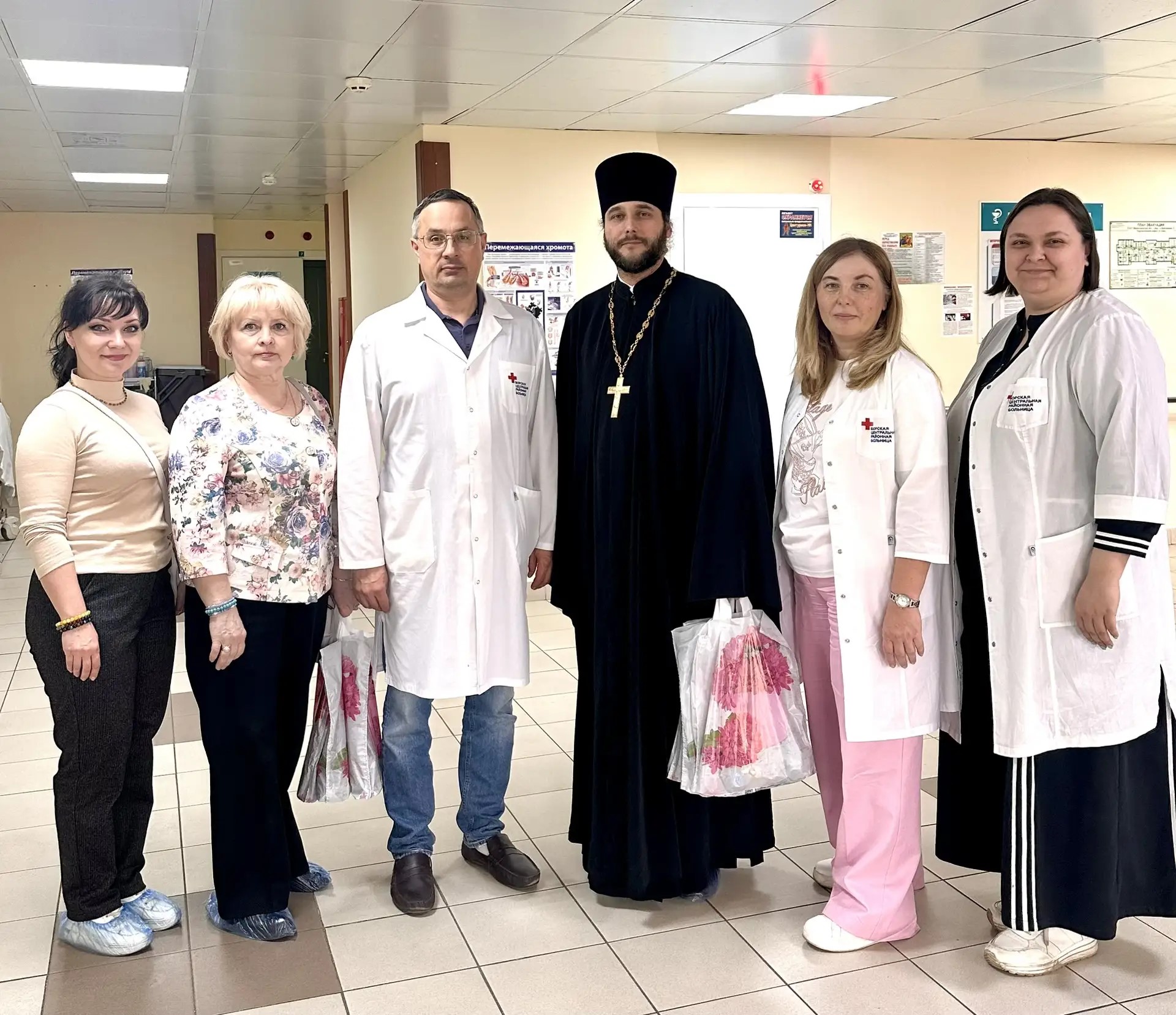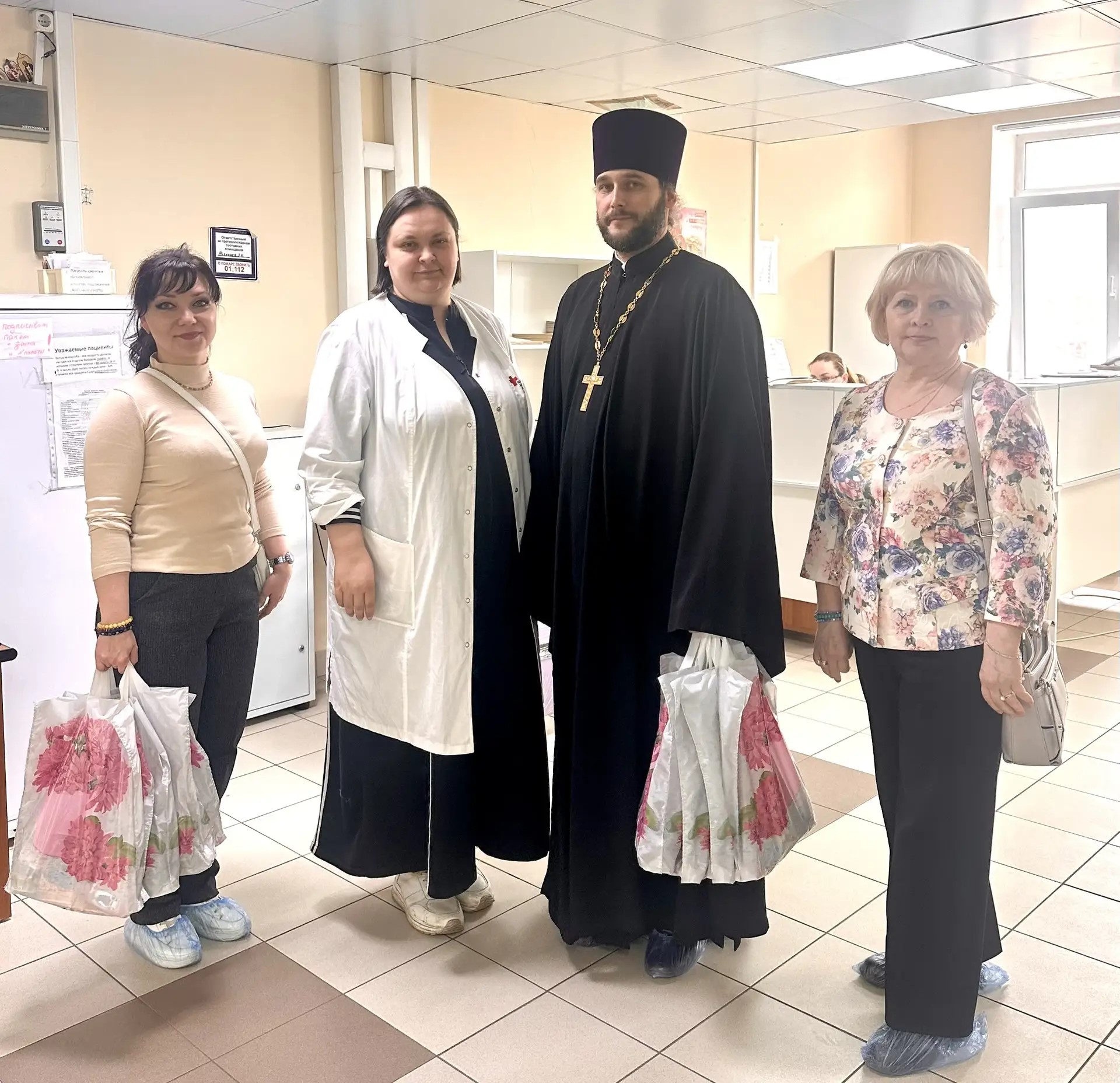Вместе с благочинным в отделении присутствовали главный врач больницы Елена Гребёнкина, заместитель главного врача по медицинской части Александр Маков, заведующая отделением паллиативной медицинской помощи Наталья Селивёрстова, а также председатель профсоюзной организации работников образования Ирина Бекетова.
